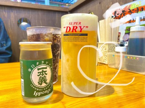 こちらでは美味しい焼きサバが頂けるのですが、まずは昼間ですが乾杯から✨✨