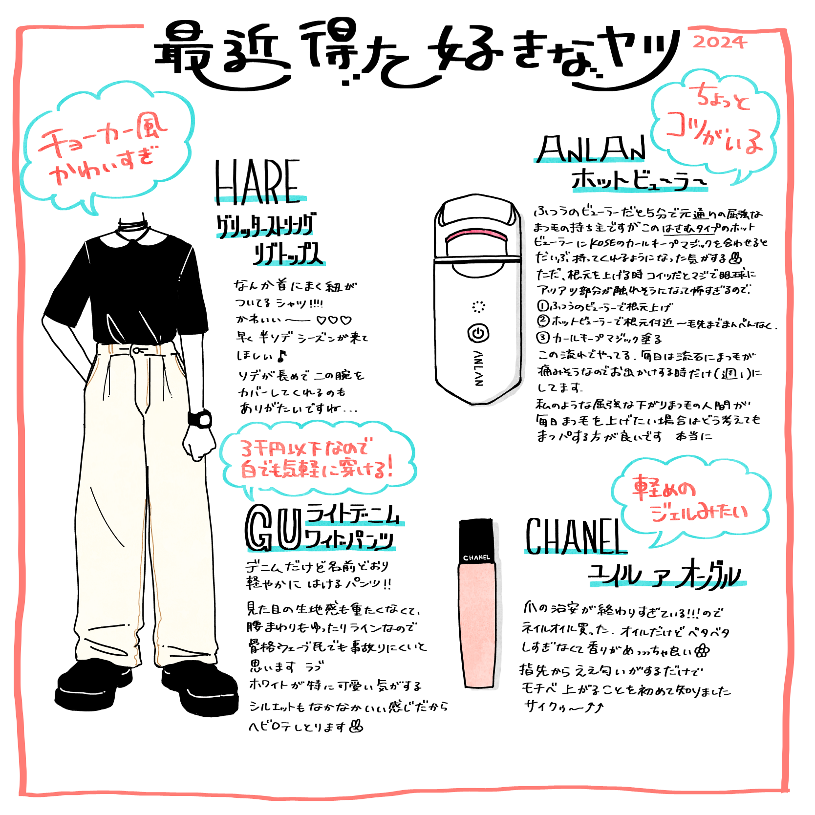 イラストで紹介していたアイテムの実物もまた載せておきます😁