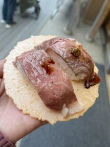 いろいろ目移りしながら、、、松阪牛寿司はやっぱり食べちゃうなあ。笑