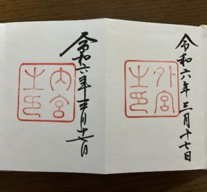 わたしは実はコロナ禍前くらいから御朱印集めをしていて、御朱印の最初のページは伊勢神宮の外宮と内宮が良いと聞いてずっと空けてあったんです!