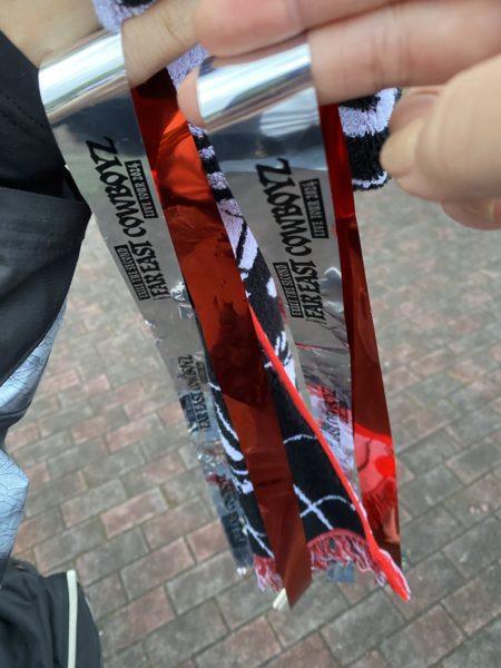 ライブではお決まりの銀テープが飛ぶのですが、当たり前に前の方の方しか取ることができません。