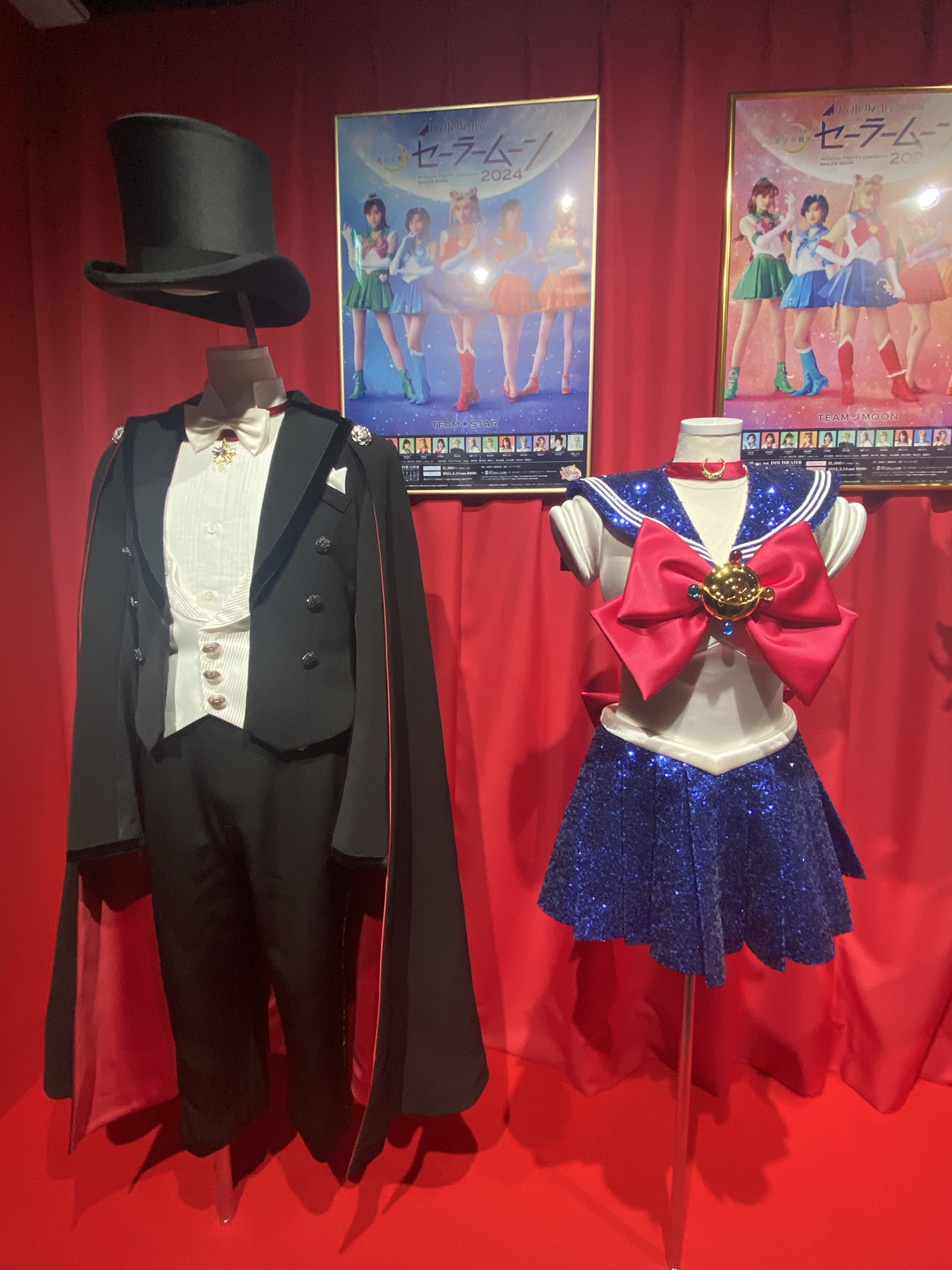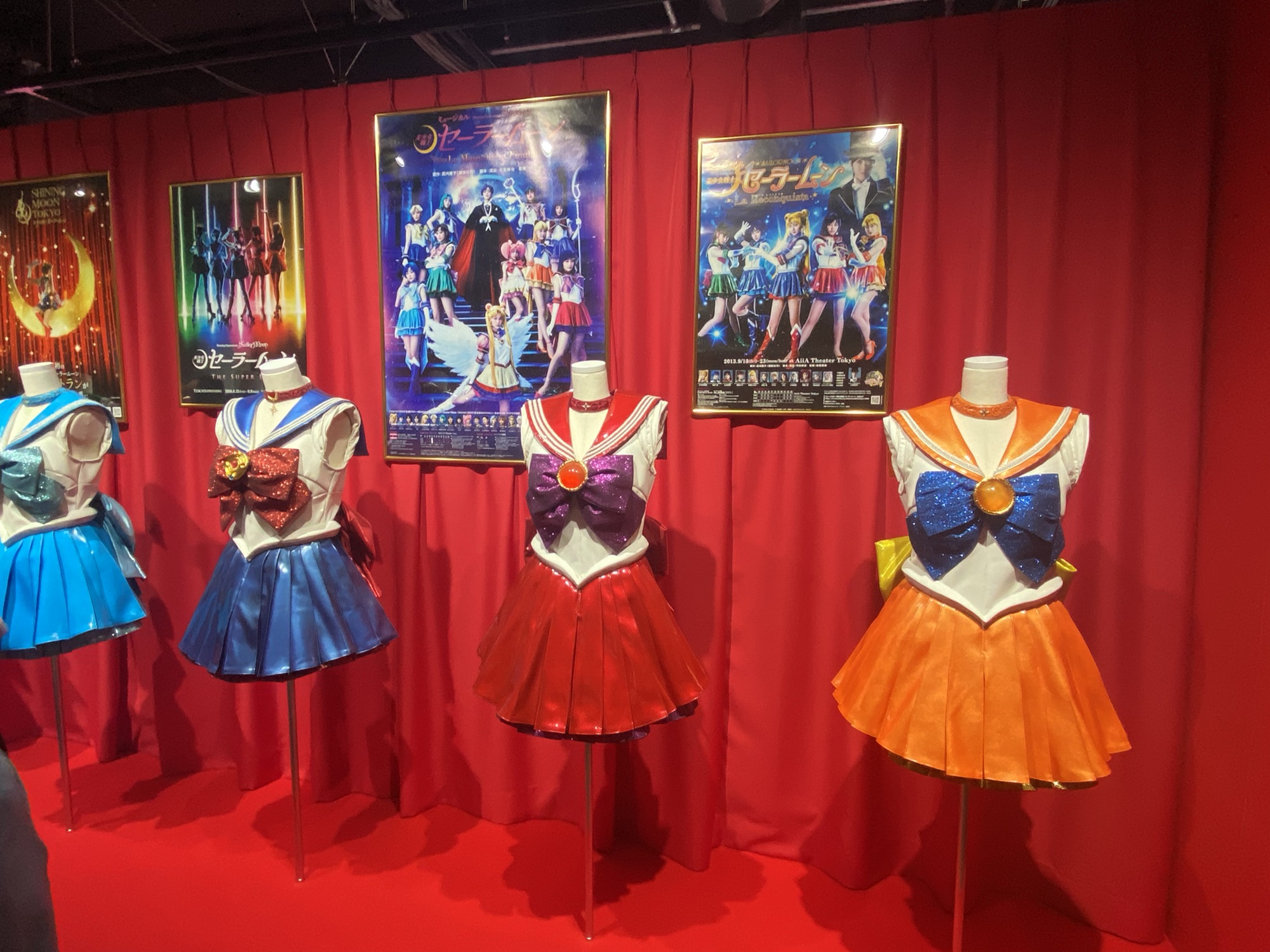 実はセーラームーンってずっと昔から今年に至るまで定期的に舞台化しているのですが、その舞台衣装も展示されていました!