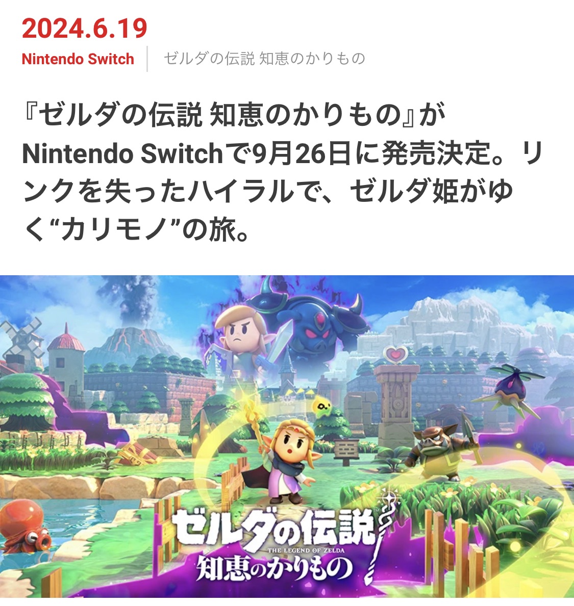 最新作ではこれまでとは真逆の展開でリンクが闇の中に飲まれてしまい、ゼルダ姫が知恵の力でリンクを助けにいくストーリーのようです