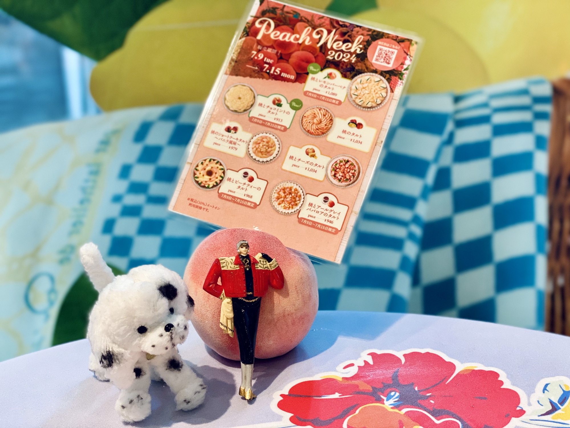 各テーブルに桃のカードスタンドがあってめっちゃかわいいです♡