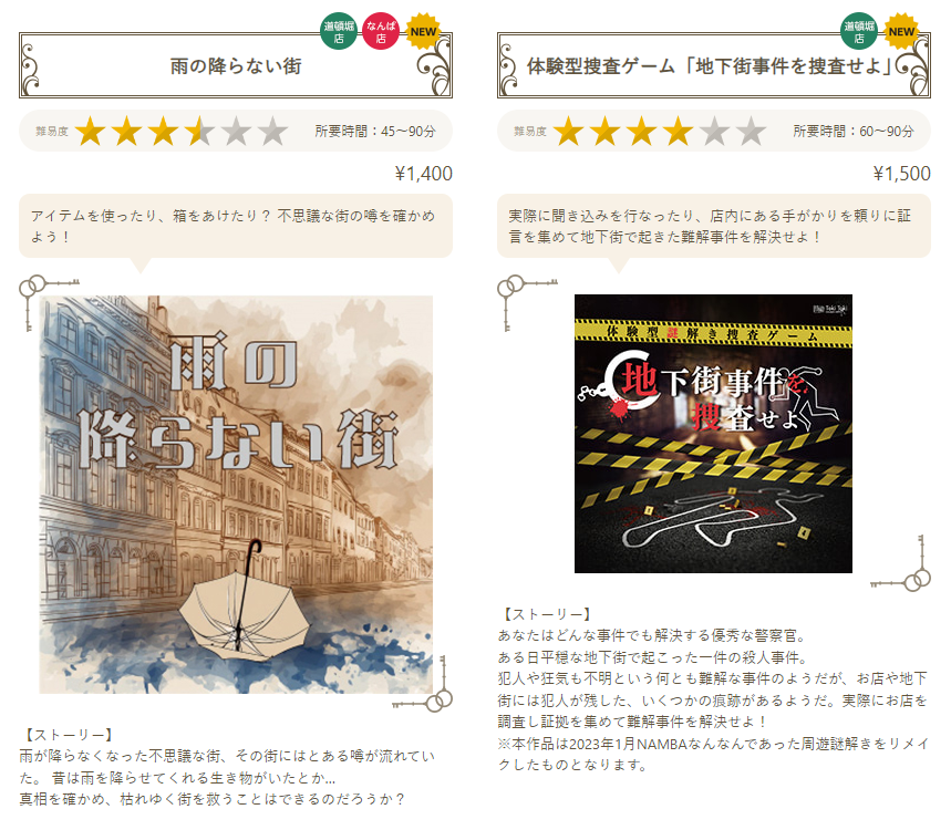 こちらのお店ではカフェ内にあるテーブル上で謎解きゲームができるものと、お店の奥にある専用ルームで謎解きを行う脱出ゲームがあるそうです!