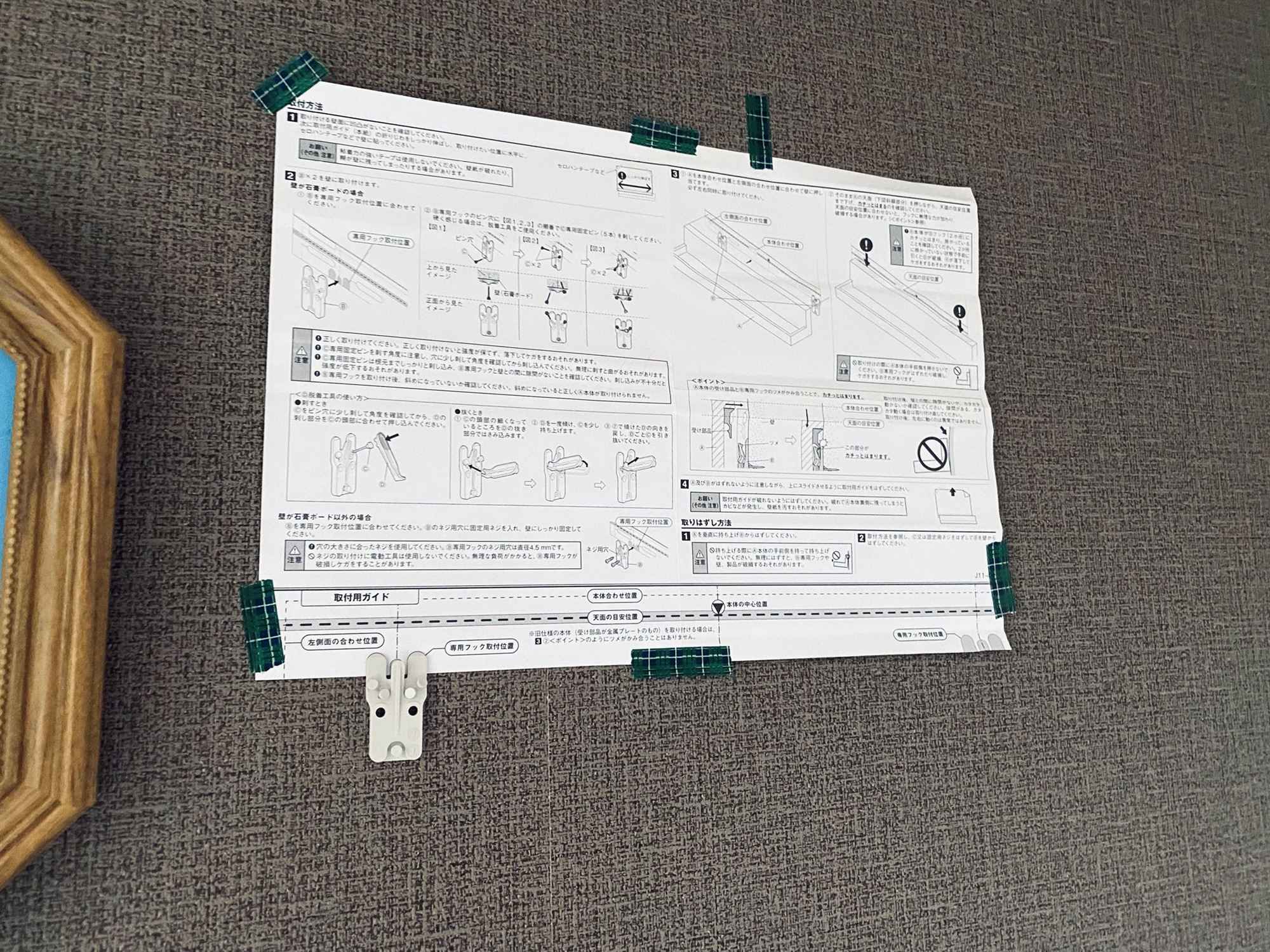 取り付け方法は↓こんな感じで、説明書のガイドに従ってピンとフックをつけていき、そこに棚をはめ込むだけです!