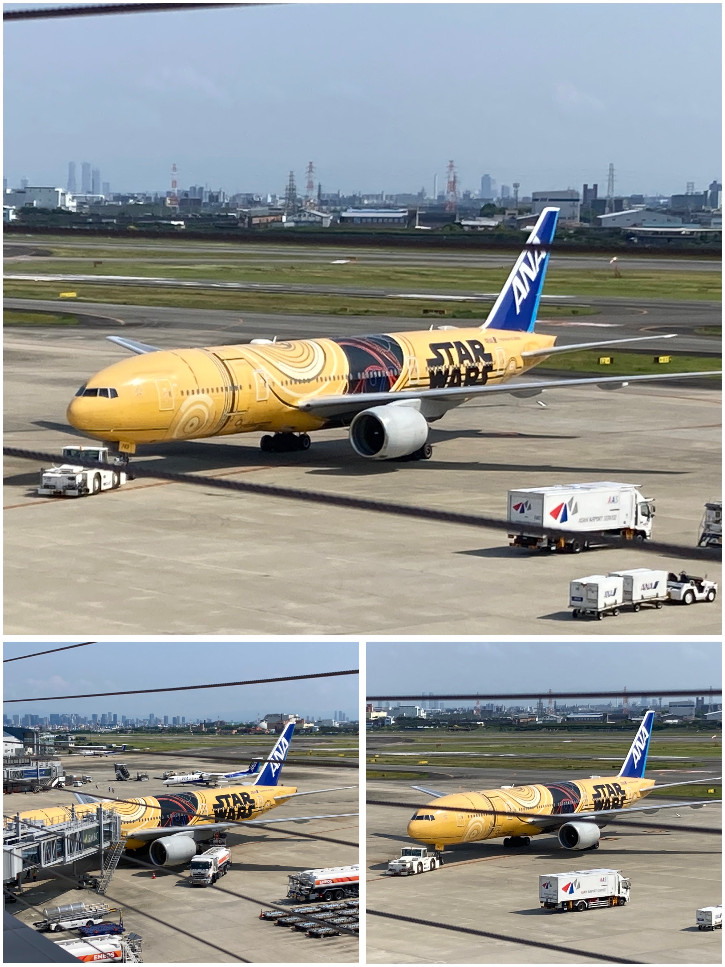 たまたま、見てるとANAのスターウォーズジェットが着陸してて、スターウォーズファンの旦那さんはテンション上がってました。