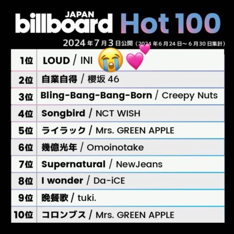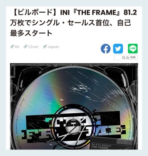 INIちゃん、週間81.2万枚を売り上げて首位!!!