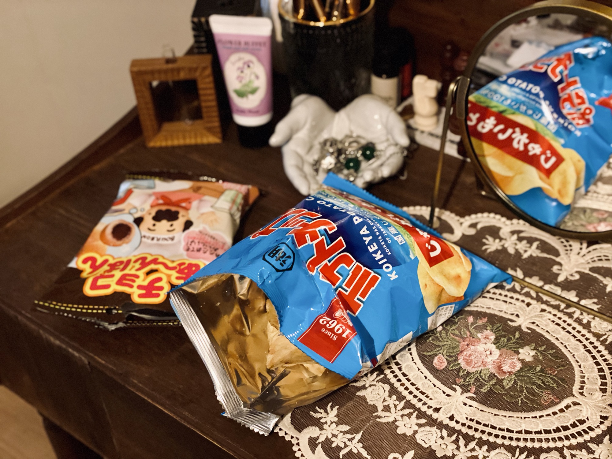 そしてお菓子を用意! 自重していたポテチも50億年ぶりに買いました🥔