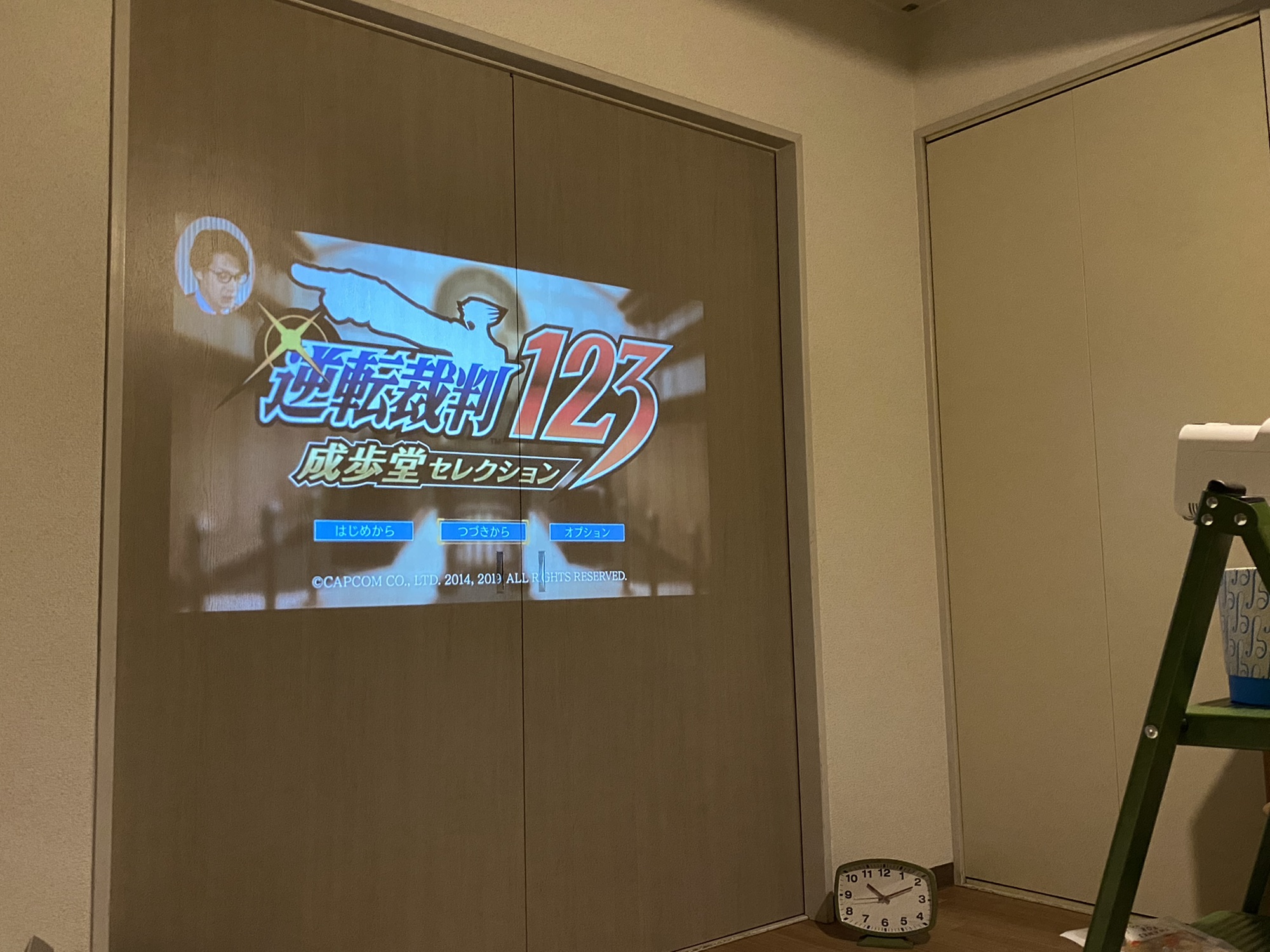 (スクリーンを買う余裕はなかったので扉に投影失礼します😂)