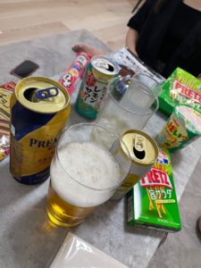 帰りに先輩にビールを買ってもらい🎶お菓子を持ち寄って宅飲み開始!!