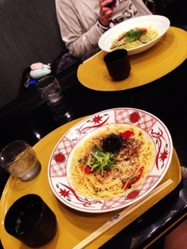 締めにヨドバシカメラ梅田店の8階に入っている、京風パスタで有名な「先斗入ル」さんで晩御飯をとりました(^ω^ )