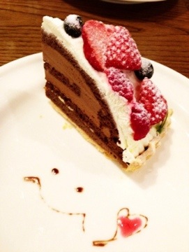 悩みに悩んでミックスベリーのチョコレートタルトとレモンティーを頂きました♪