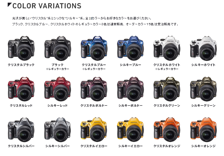 PENTAXカメラの個性とも言えるカラーバリエーションの多さも魅力の一つですね。