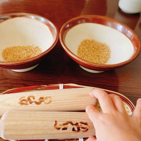 まずは楽しみの一つのごまをスリスリして、食事が到着するのを待ちました