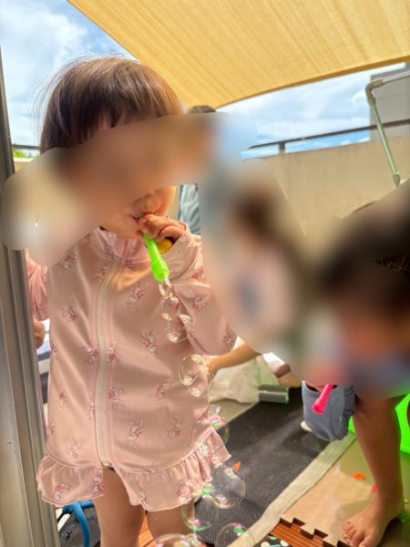 ギリギリ外と室内の狭間でシャボン玉をするのが精一杯のようでした