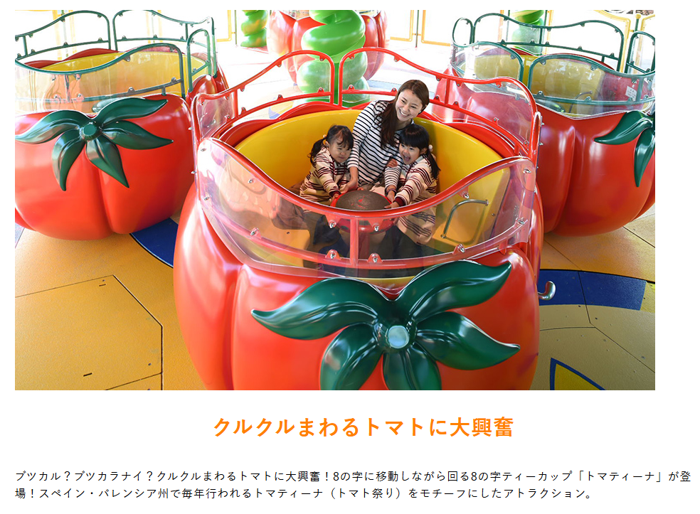 ティーカップならぬトマトに乗ってぐるぐる回るやつです!