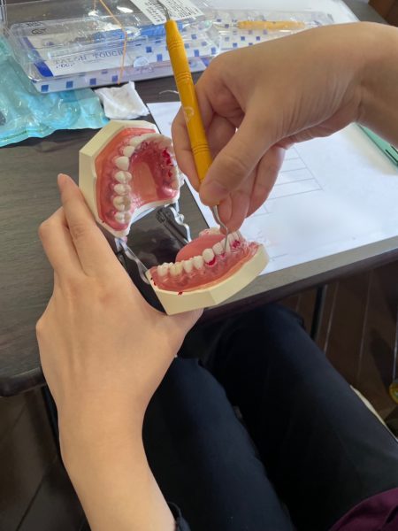 顎模型とキュレットスケーラーを使ってまずは前歯部の練習!