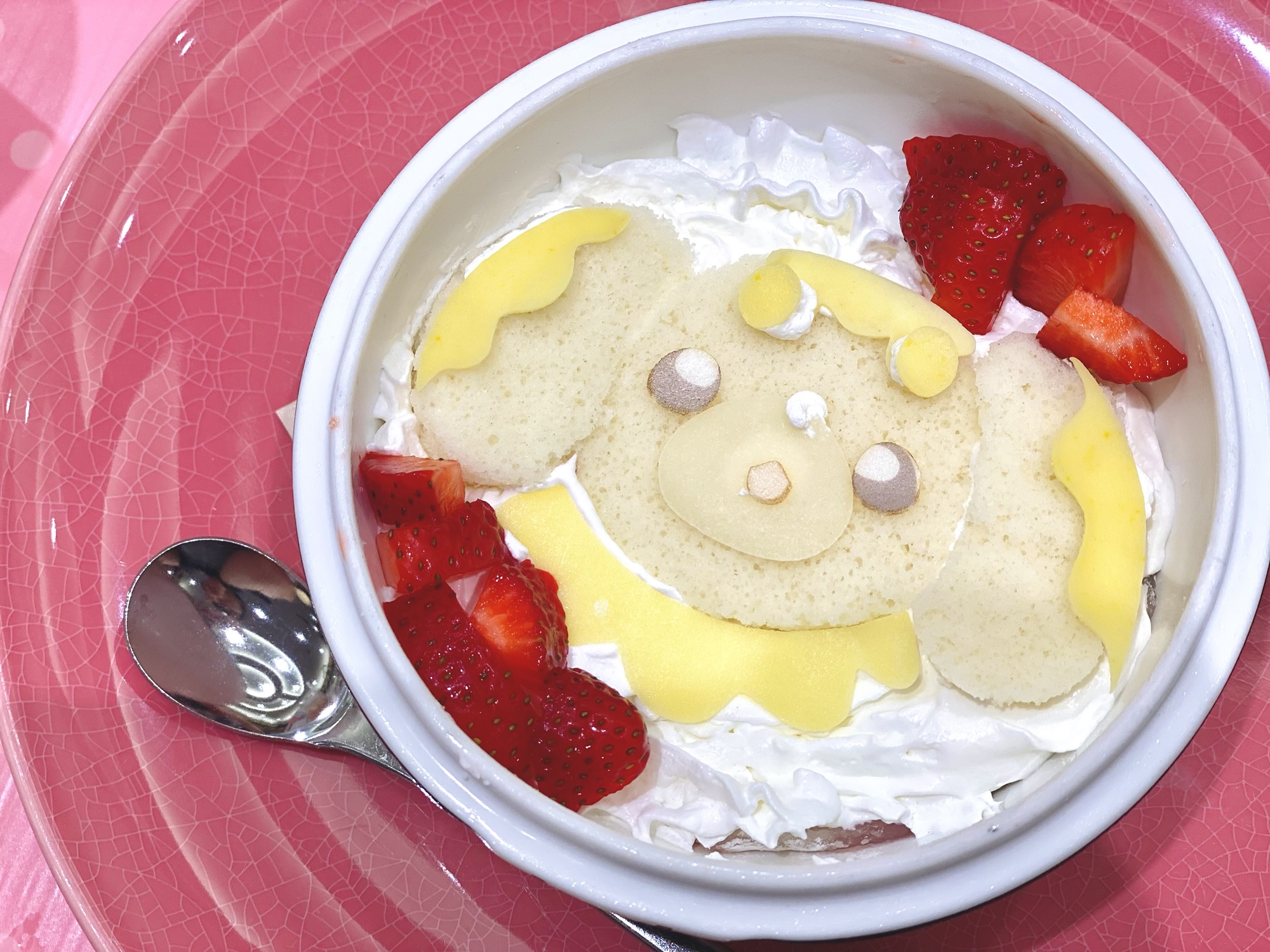 ホイップクリームたっぷりで食べきれるかちょっと不安でしたがこの下にスポンジケーキやフランボワーズソース、求肥、蒸しケーキなど色んなものが隠れていて最後までちゃんと食べられました😳💕