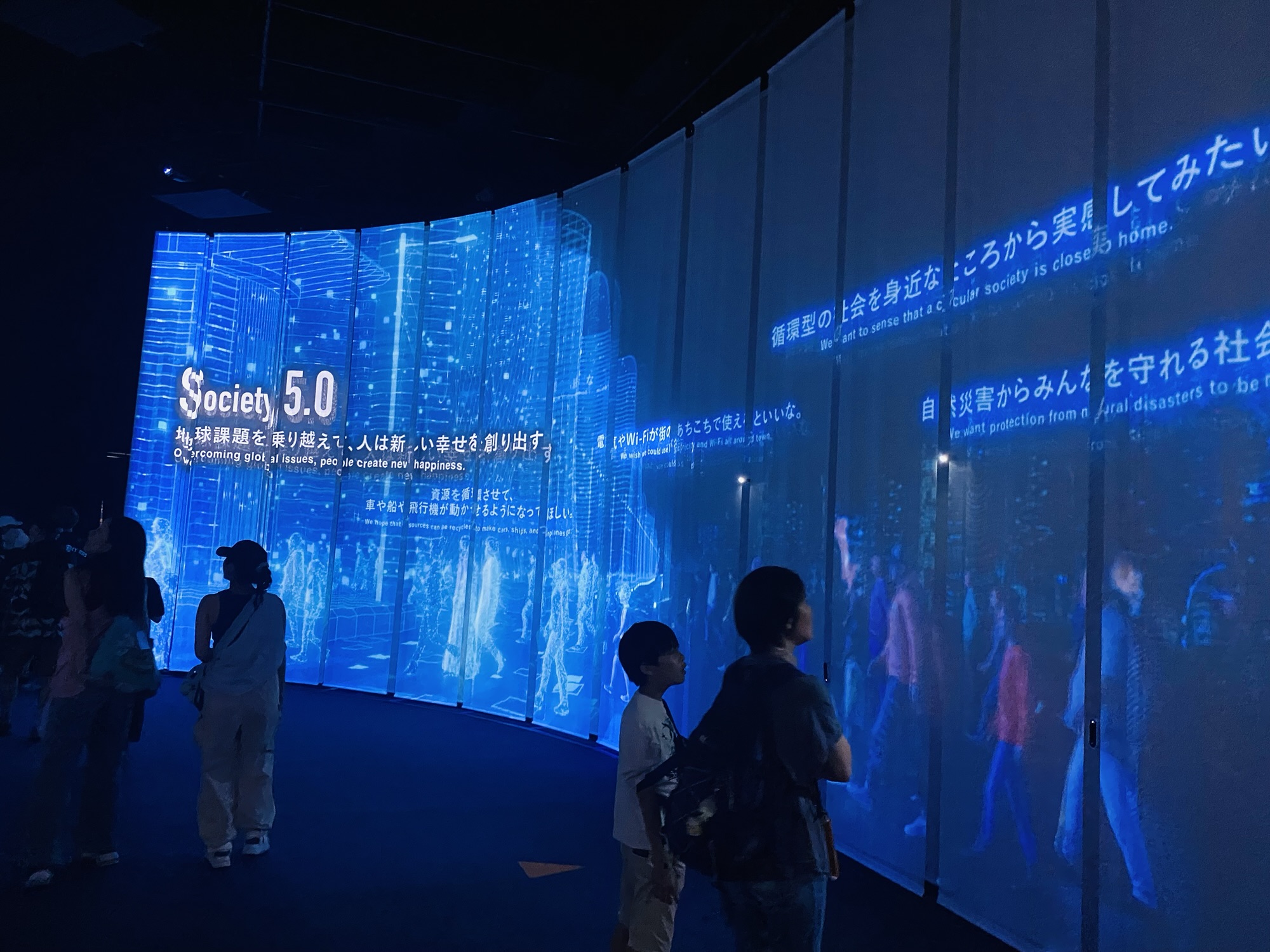 サイバー空間と現実空間を融合させた展示で経済発展と社会課題の解決を両立する未来社会を体験できるつくりでした