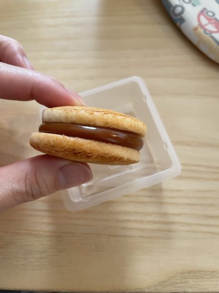 クッキーもほろほろ美味しくて、中のキャラメルがとろ〜としていてその中にバタークリームが入っています