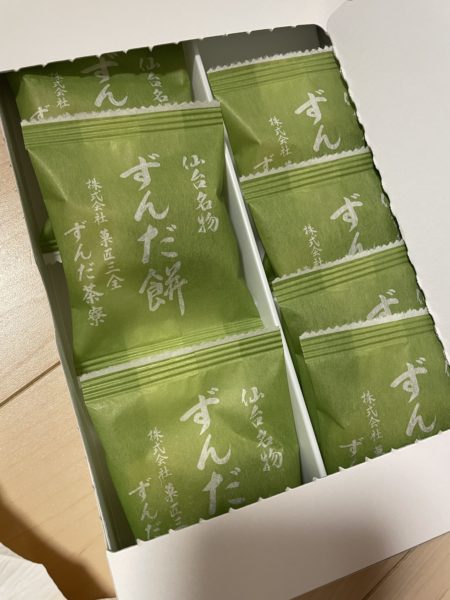 これはお土産用に餡が包まれているタイプで、ずんだの香りが控えめで助かったお饅頭です笑
