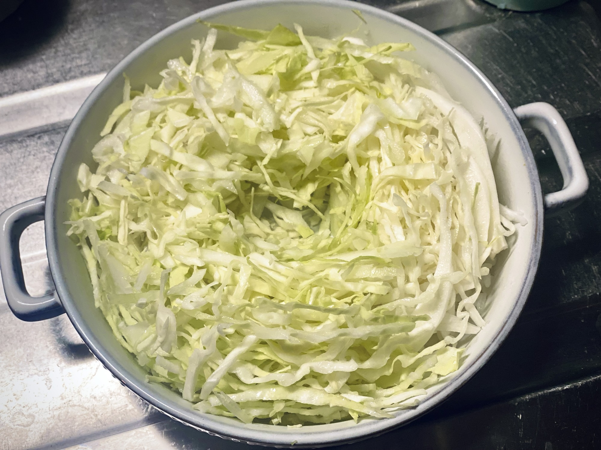 ここからは完全に我流なのですが、ご飯の上にこれでもかと千切りキャベツを盛ります