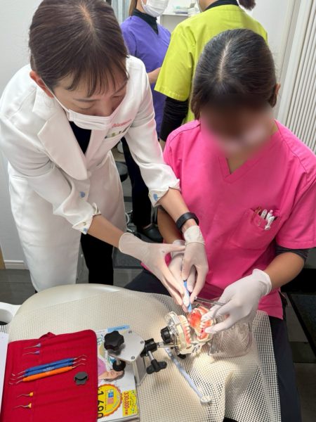 前回からの課題で11、12のシャープニングの動きと角度の確認をしてもらいました!そもそものシャープニング始めます!の角度から少し違ったのでスケーラーとストーンの離れ具合などもしっかり観察しながら行いました!