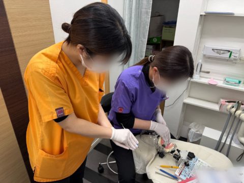 あと、右下頬側の4.5番も近心でできていたことが、遠心ではうまく根面に当たらず苦戦しました。新しい部位で不慣れなのが大きいかなと思うので、練習して習得できるようにがんばりたいです!セミナーを何回も受けることで、どうやったら根面に当たりやすくなるとか動かしやすくなるというのは、わかるようになってきて、言われてることもわかるようになってきました。