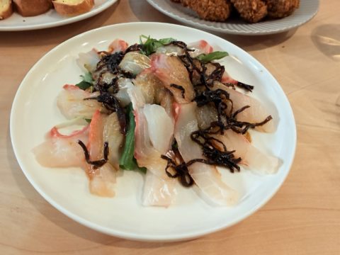 新年会で忘れられなかったポテサラ、カルパッチョ、(塩昆布)、丸富の唐揚げ、コロッケまで!