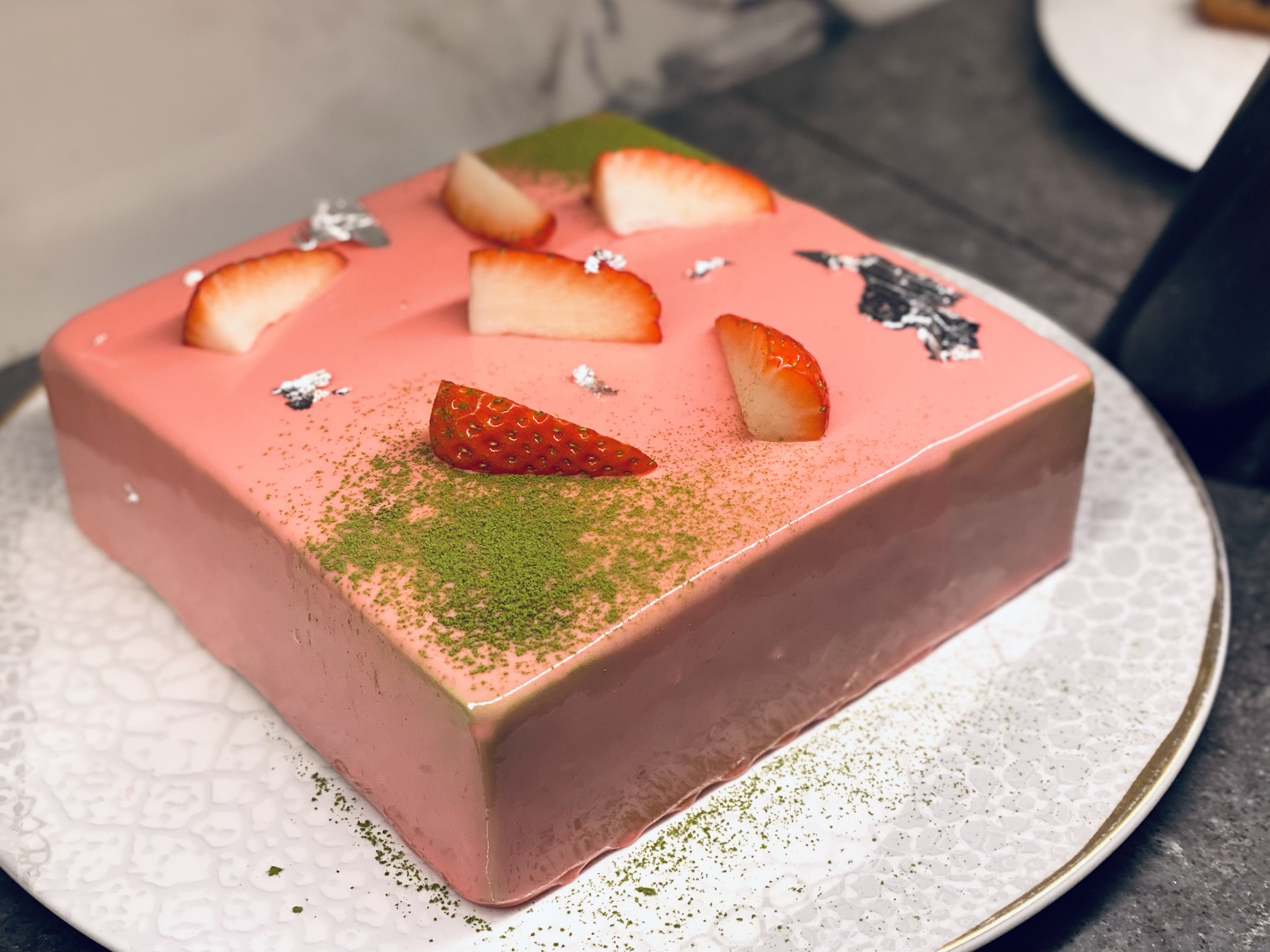 取りに行ったとき、一番狙っていたイチゴとヨーグルトのババロア(金箔が散らされてるケーキ)はまだ誰も手をつけてなくて私がファーストカットすることになってしまい、、、めちゃくちゃ緊張しながらカットさせていただきました😭