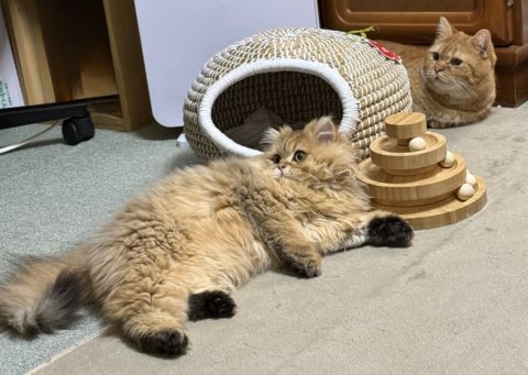 マロンとはまだ少しよそよそしいですが、お互いに警戒している様子はなく、楽しそうに過ごしています🐱🐱