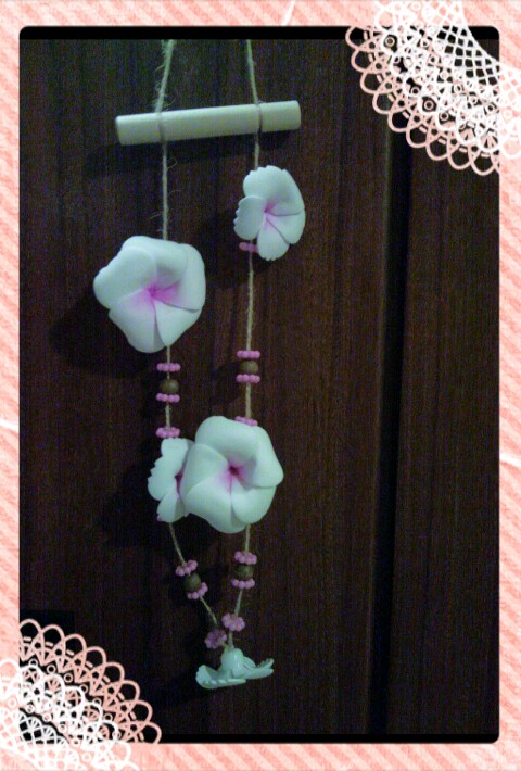 母親が買ってきたそうで、この可愛いお花の飾り物は虫除けグッズだそうです♪