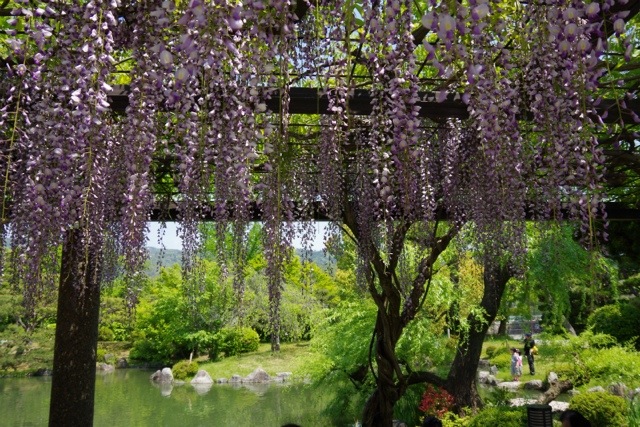 幸福感に浸りながらふらふら歩いていると、京都市美術館さんの裏手にある小さな公園(?)に満開の藤棚を発見!
