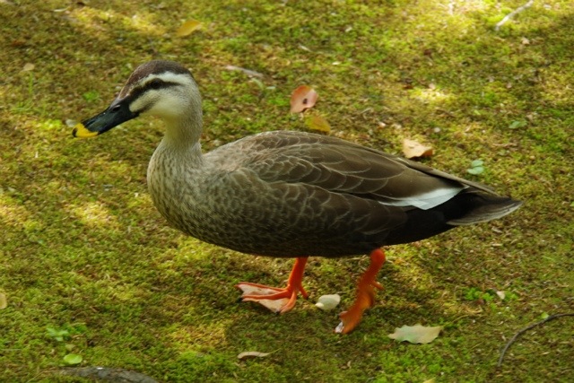 見ると、すぐ目の前をぺたぺたと横切ろうとする一羽のカモが!