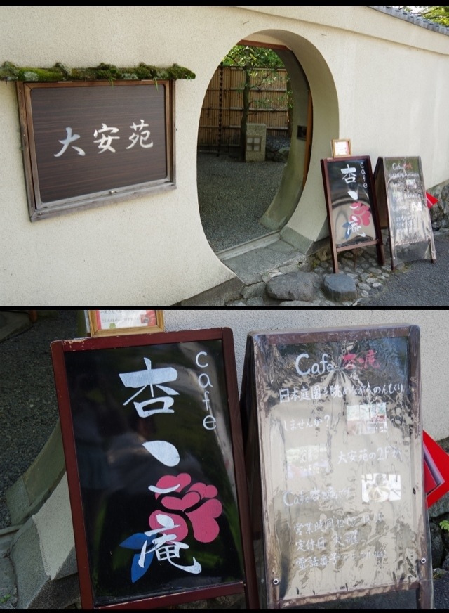南禅寺のすぐ目の前にあるお店で、入口と『大安苑』という看板を見ただけだと、料亭かな?と思いがちなのですが、横の立看板をよく見ると「杏こ庵」の文字が。