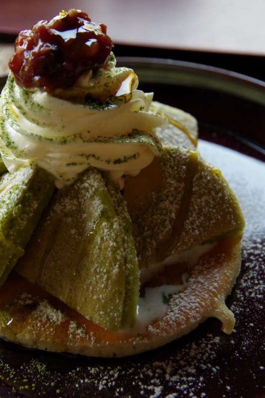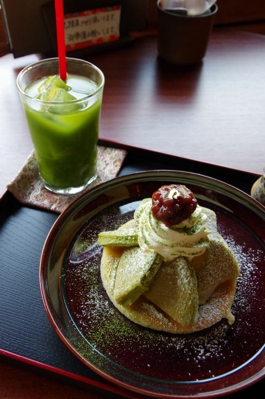 今回は杏こ庵さん名物(?)の「杏こパフェ」…本当はこれを頼もうと思っていたのですが、1日限定5食というフレーズについつい惹かれてしまい、悩みに悩んで結局「キョン店長の2段パンケーキ」と「グリーンティー」を頼みました。
