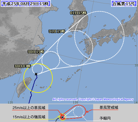 天気図を見てみますと、東シナ海上に台風15号が発生しています。