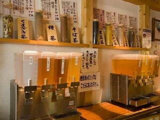 温泉の休憩所には健康茶が何種類もあり