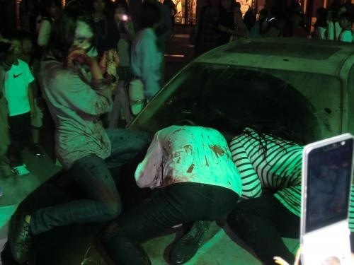パークの約90%がゾンビによって占拠されたエリア内では、そこかしこから一般ゲストの悲鳴が聞こえてきます…(;`・ω・´)