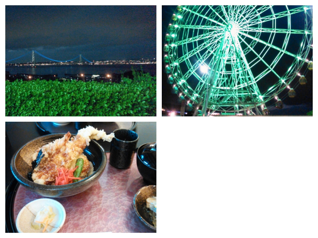 夜はライトアップされた明石海峡大橋を見るために、ハイウェイオアシスに寄り夜景を楽しみ、お食事もしました(^o^)
