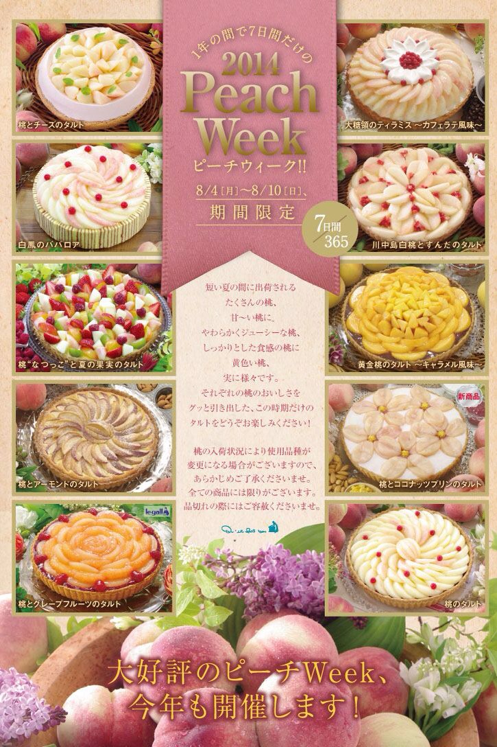 どれも美味しそうで、出来る事なら全種類食べてしまいたい…しかし桃ウィークというだけあって1週間というあまりにも短い期間…どうしたら全種類制覇することが出来るのか…!