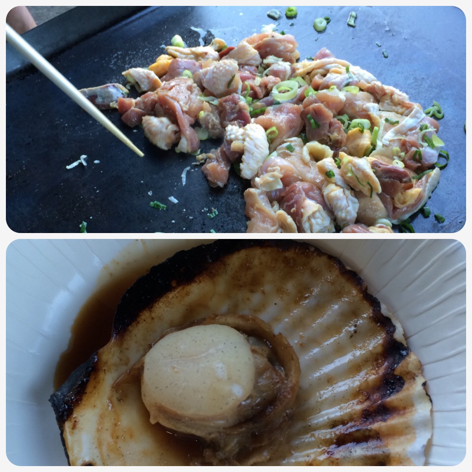 お腹を空かせての到着でしたので早速ホタテと鳥肉を焼いてもらい腹ごしらえ。