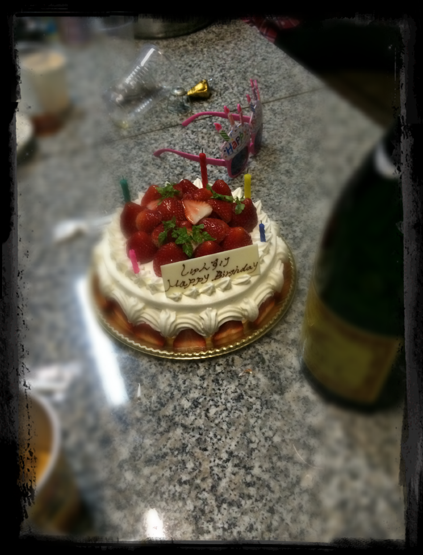 夜は友人の誕生日もあり、サプライズでケーキが登場!