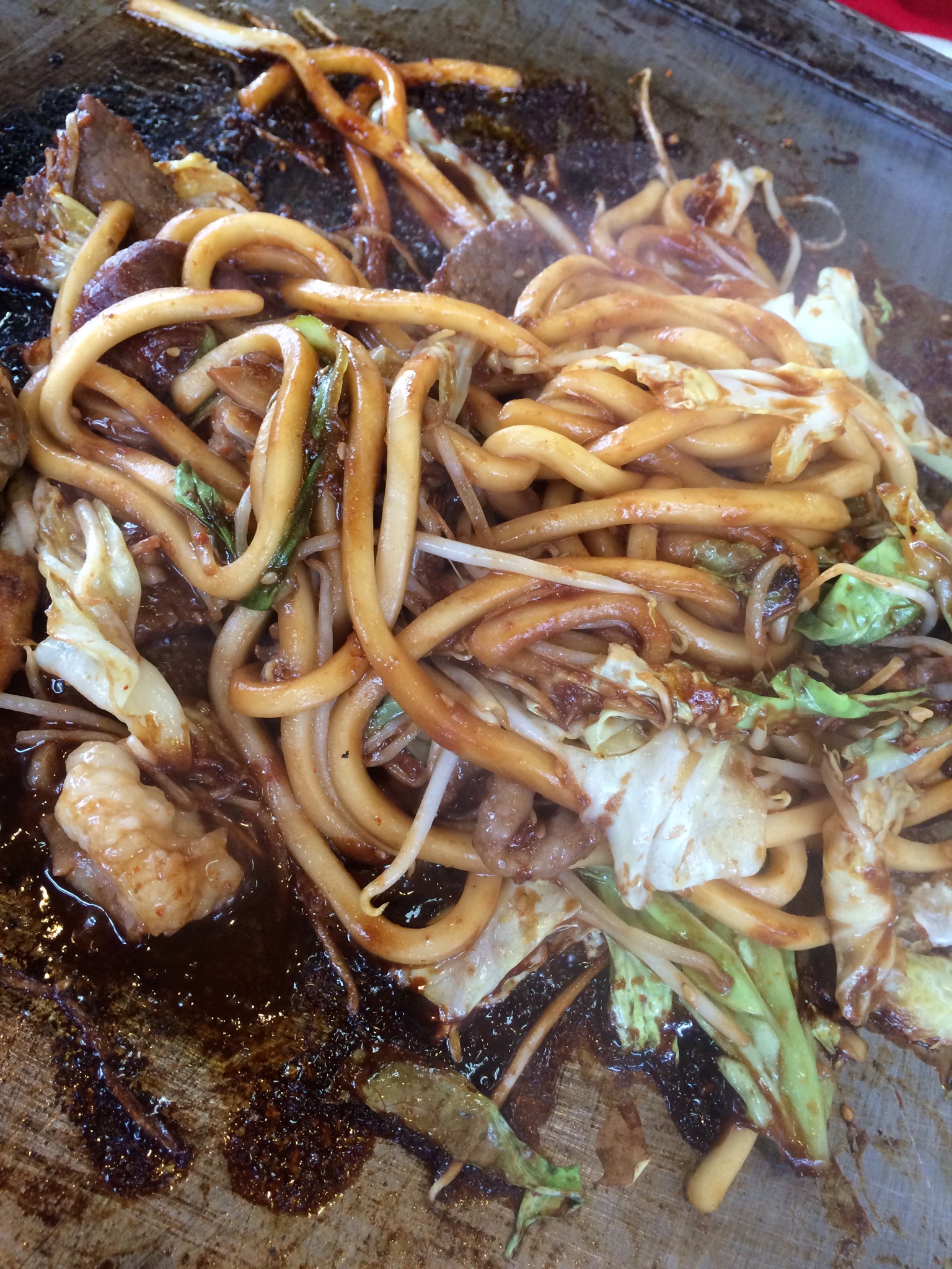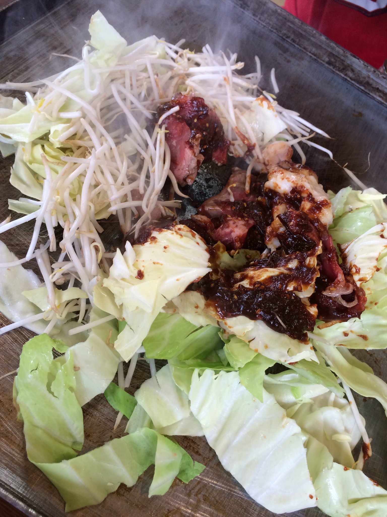 美味しくいただいたのですが、鉄板での調理のため、めちゃくちゃ味噌が飛び散るので、女性の方は服装には注意したほうがよさそうです。。。(^_^;)