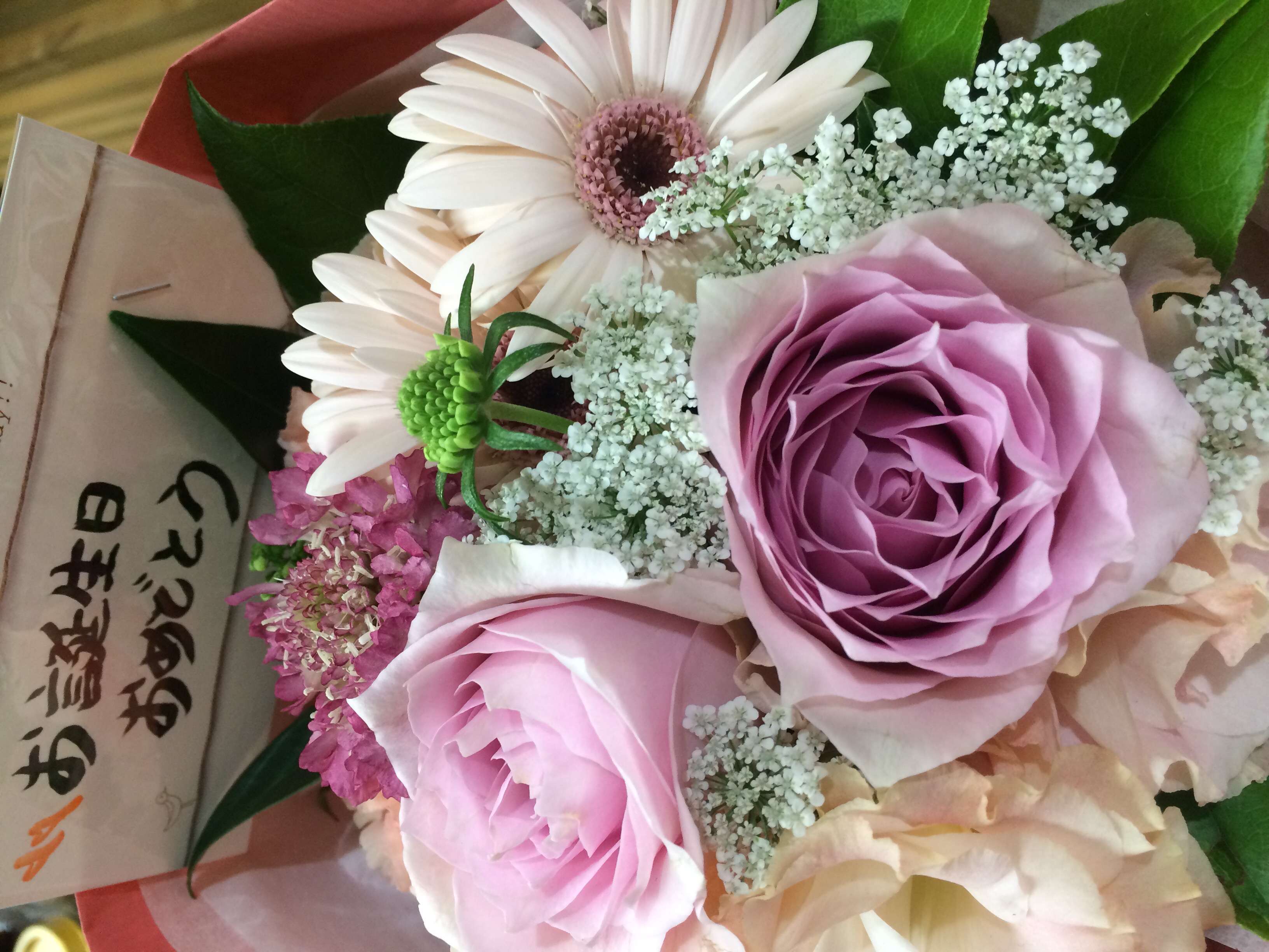 そしてさらに、プレゼントが用意されており、スタッフからピンク色のかわいい花束を頂きました*\(^o^)/*