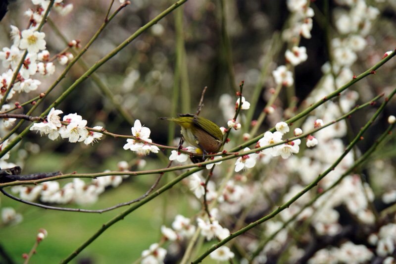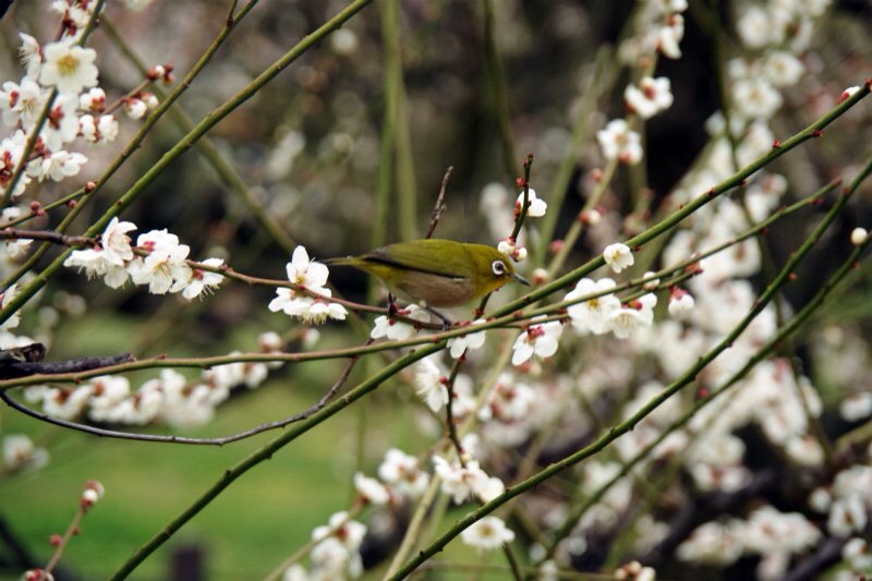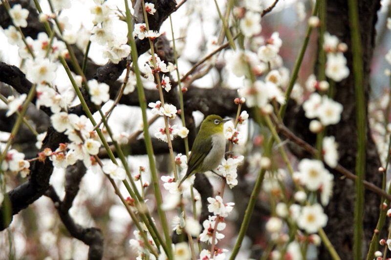 人だけではなく、メジロをはじめとした鳥たちも夢中になって梅の木に集まり、蜜を吸いに飛び回っていました。