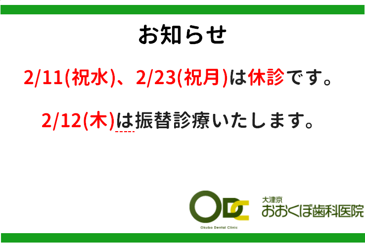 2月の休診日について